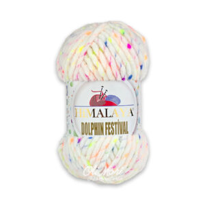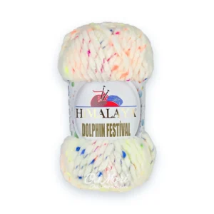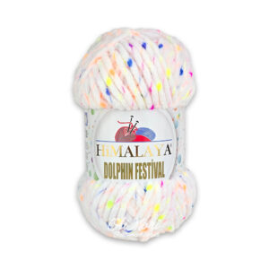 Nowość! Himalaya Dolphin Festival – włóczka fantazyjna z dominującym poliestrem (85%) i poliamidem (15%), wyróżnia się specyficzną strukturą z przeplatanymi kolorowymi „nopkami” (plamkami).