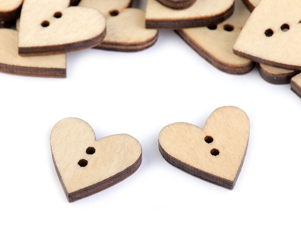 Guzik drewniany [Serce] [Naturalny] [2 cm]