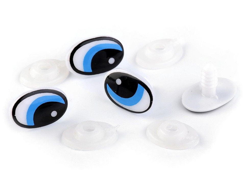 Plastikowe oczy świetne przy tworzeniu szydełkowych maskotek Amigurumi. Oczka zakłada się łącząc oko z bezpiecznym zapięciem, które zapobiega odpadaniu zamontowanych już oczu.