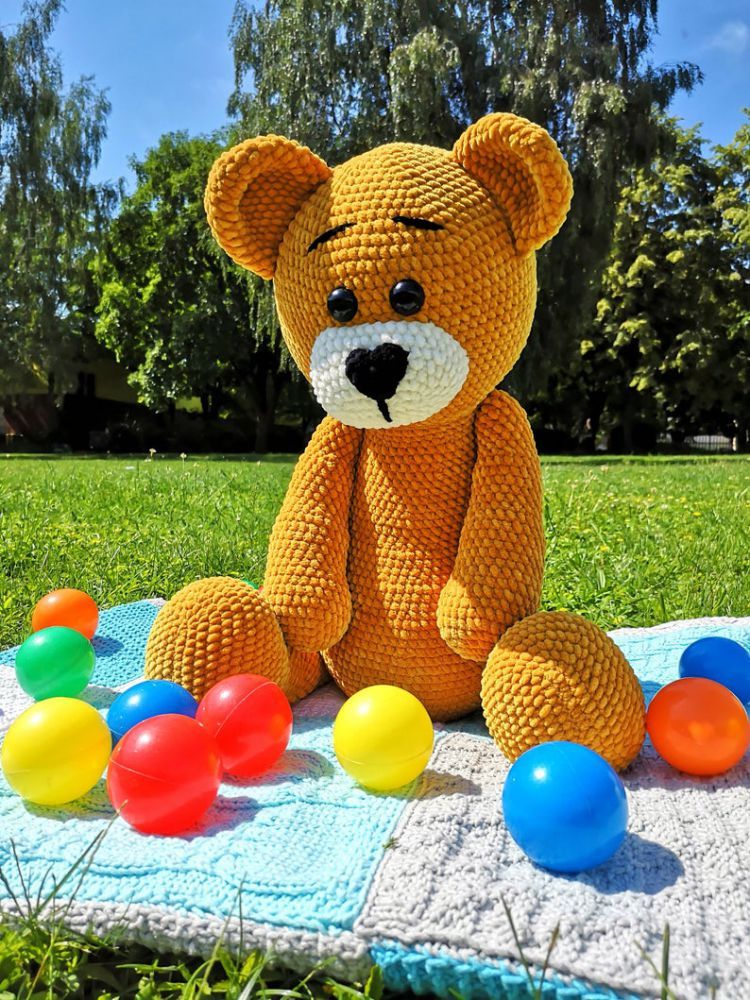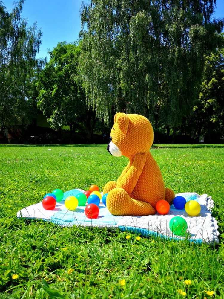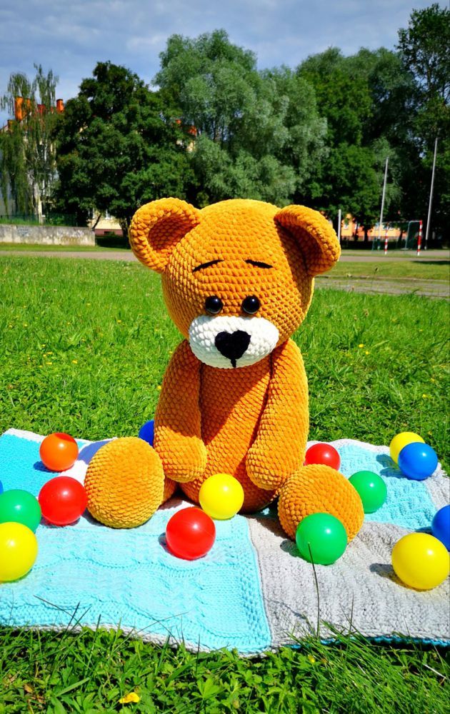Mój miś, wykonany wg wzoru, ma ok. 70cm wysokości.