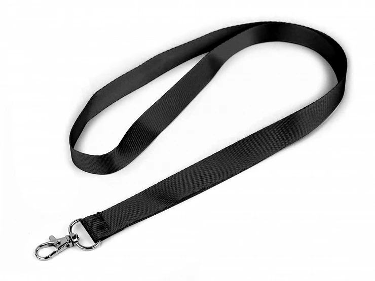 Sznurek wykonany jest z mocnej taśmy o szerokości 1,9 cm. Karabińczyk ma wymiary 1,5 x 3 cm.