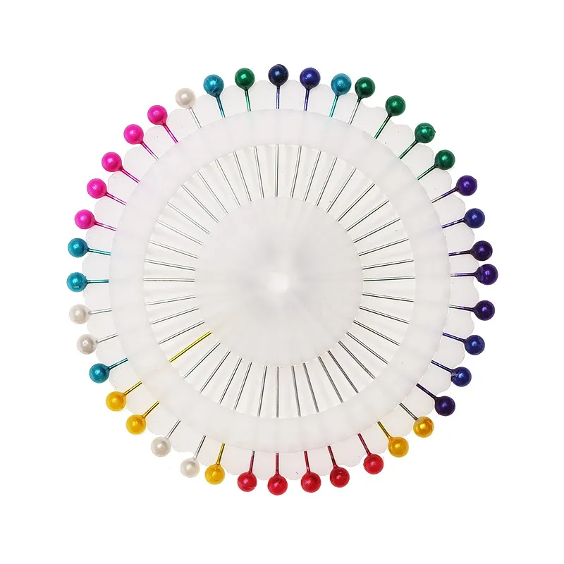 Komplet 40 szpilek z kolorowymi główkami na wygodnym w użyciu krążku.