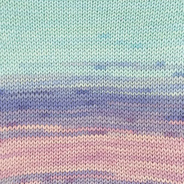 To kolorowa wersja klasycznego Jeans — posiada wielobarwne przejścia, które tworzą ciekawy efekt podczas dziergania bez konieczności zmiany włóczki.