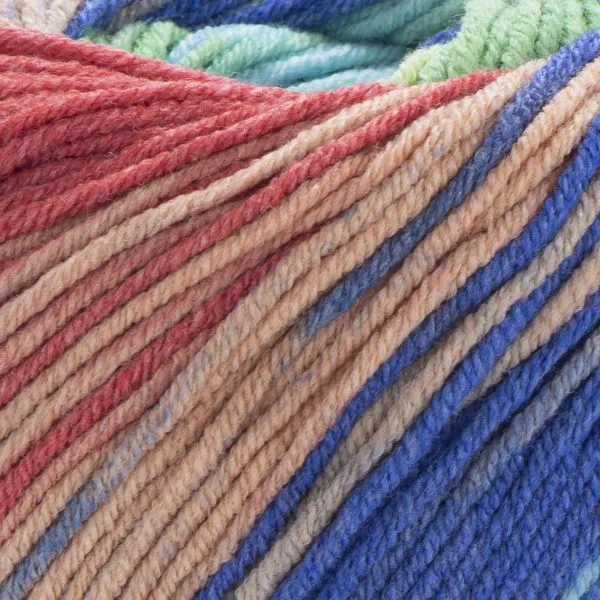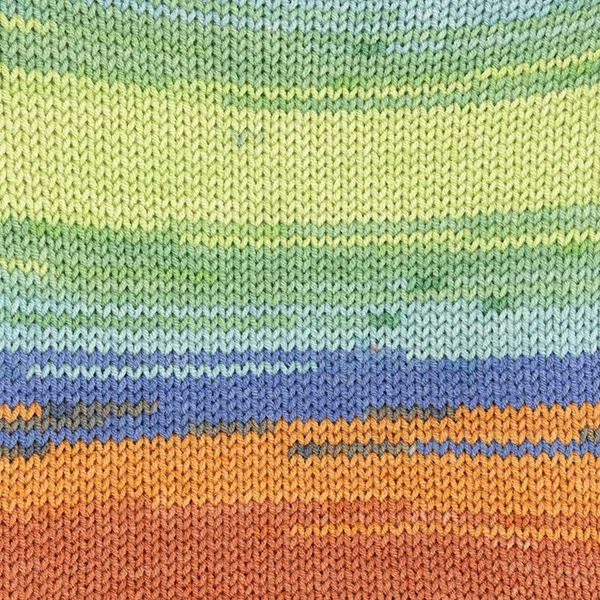 To kolorowa wersja klasycznego Jeans — posiada wielobarwne przejścia, które tworzą ciekawy efekt podczas dziergania bez konieczności zmiany włóczki.