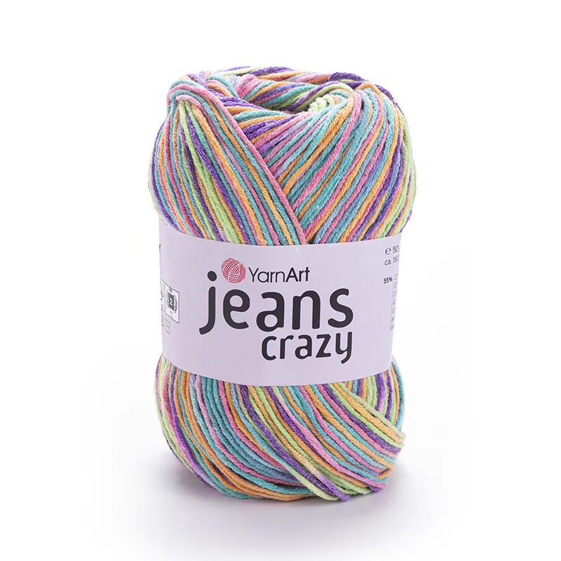 YarnArt Jeans Crazy to delikatna, miękka w dotyku włóczka, odporna na mechacenie. W skład wchodzi 55% bawełny i 45% akrylu. Włókna są bardzo dobrze skręcone, co sprawia, że jest bardzo wygodna przy przerabianiu.