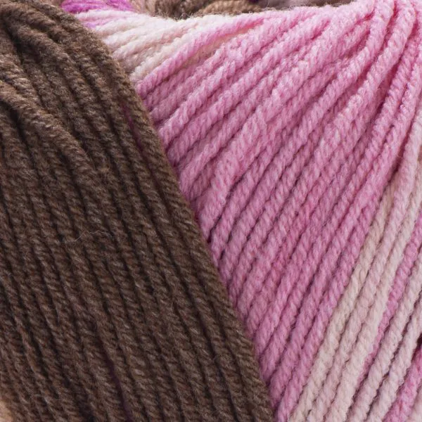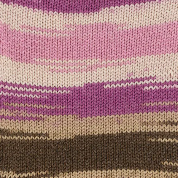 To kolorowa wersja klasycznego Jeans — posiada wielobarwne przejścia, które tworzą ciekawy efekt podczas dziergania bez konieczności zmiany włóczki.