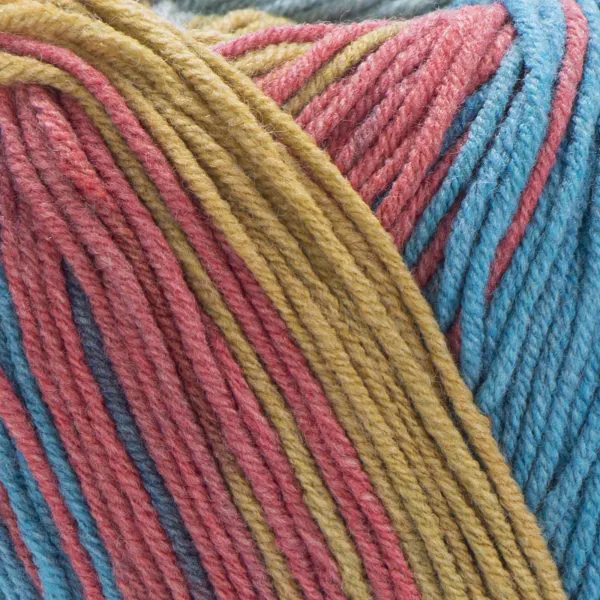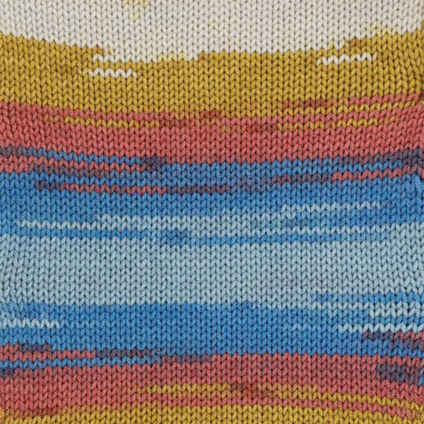 To kolorowa wersja klasycznego Jeans — posiada wielobarwne przejścia, które tworzą ciekawy efekt podczas dziergania bez konieczności zmiany włóczki.