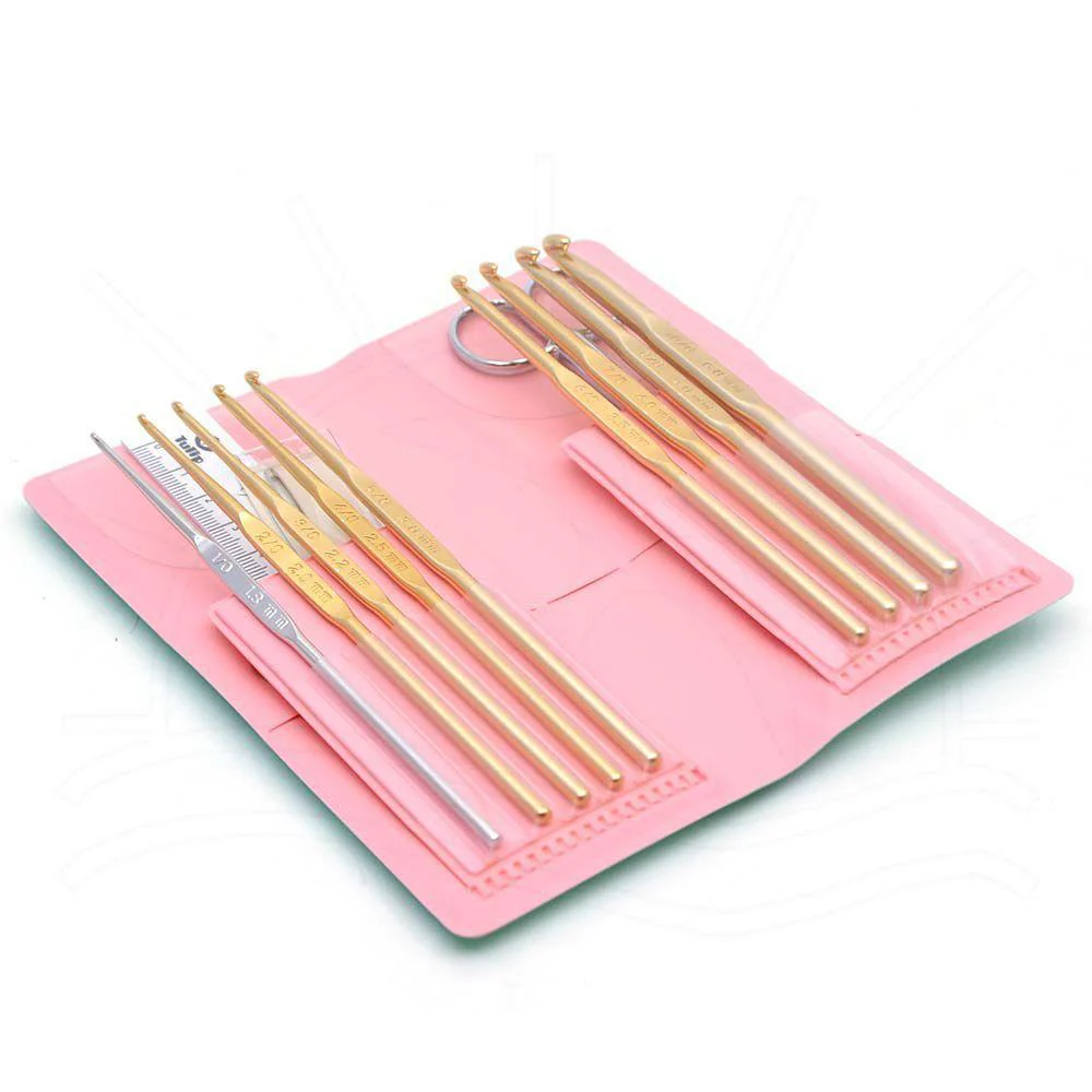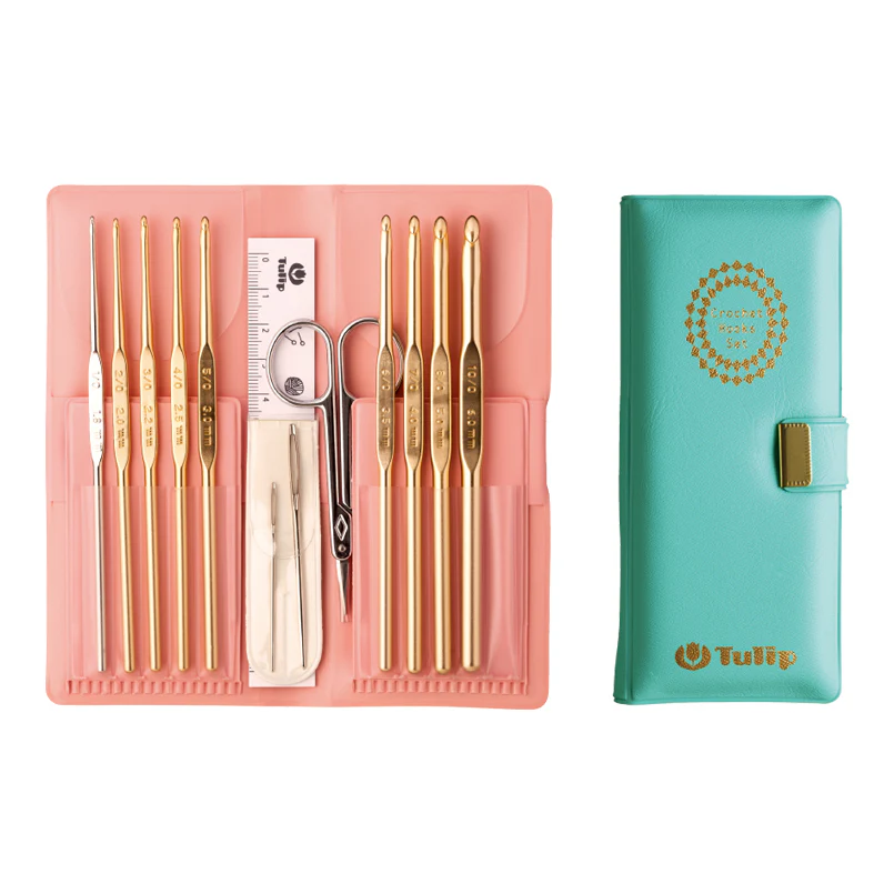 Zestaw klasycznych szydełek od japońskiej marki Tulip w 9 rozmiarach wraz z poręcznym etui i paroma akcesoriami.